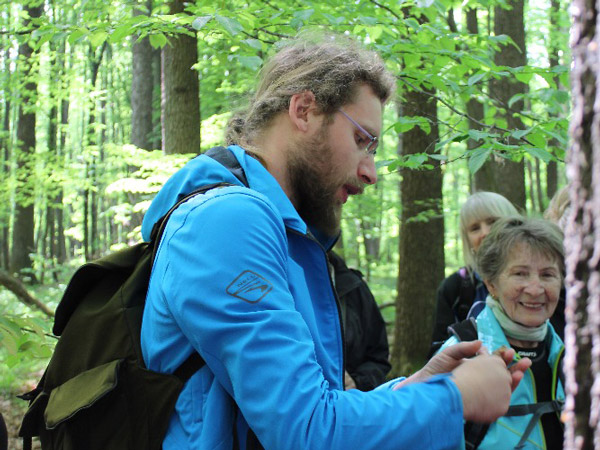 Trasa exkurze pokračovala v lesní části PP, kde jsme ještě zastihli dokvétající jarní geofyty – např. česnek medvědí (Allium ursinum) a druhy vázané na karpatskou oblast – ostřice převislá (Carex pendula) a kyčelnice žláznatá (Dentaria glandulosa).