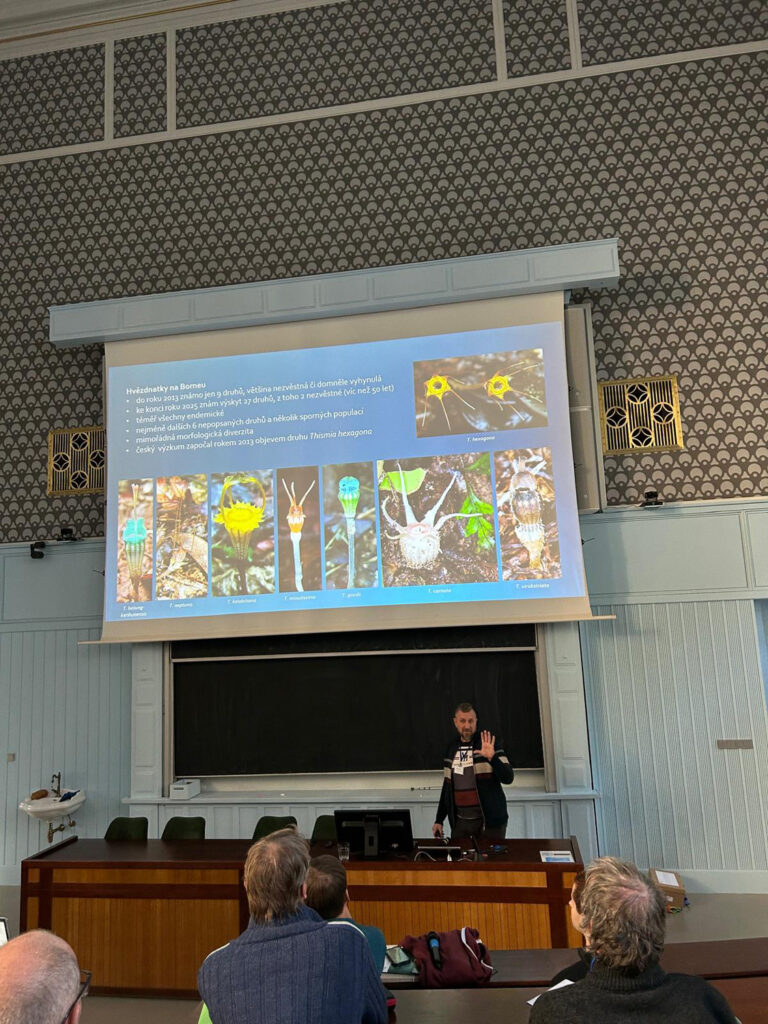 Ve dnech 22. a 23. 11. 2025 proběhla v prostorách Univerzity Karlovy na Albertově konference České botanické společnosti na téma Český botanický výzkum v zahraničí. Cílem konference bylo představit košaté aktivity českých botaniků v k České republice bližších i dalekých krajích. Účastníkům konference byl představen výzkum sukcese lesní vegetace v rumunském Banátu, studium evoluce lakušníků ve vodách celé Evropy, popisování nových druhů hvězdnatek na Borneu, diverzita mechů v Makaronézském městě a mnoho dalšího. Jednotlivé prezentace kombinovaly vědecké výsledky s fotografiemi i anekdotami z výzkumu ve specifických prostředí cizích krajin. Potěšující bylo zjištění, že česká botanická stopa sahá snad všude tam, kde nějaké rostliny rostou. Zavítali jsme tak například do Jižní Koreje, na Papuu Novou Guineu, do jižní Afriky, na Kavkaz, na Sibiř i do And. Celý program konference si můžete prohlédnout zde.