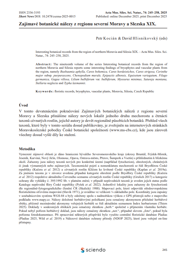 Právě vyšel v časopisu Acta Musei Silesiae, Scientiae Naturales další (19.) díl seriálu Zajímavé botanické nálezy z regionu severní Moravy a Slezska.